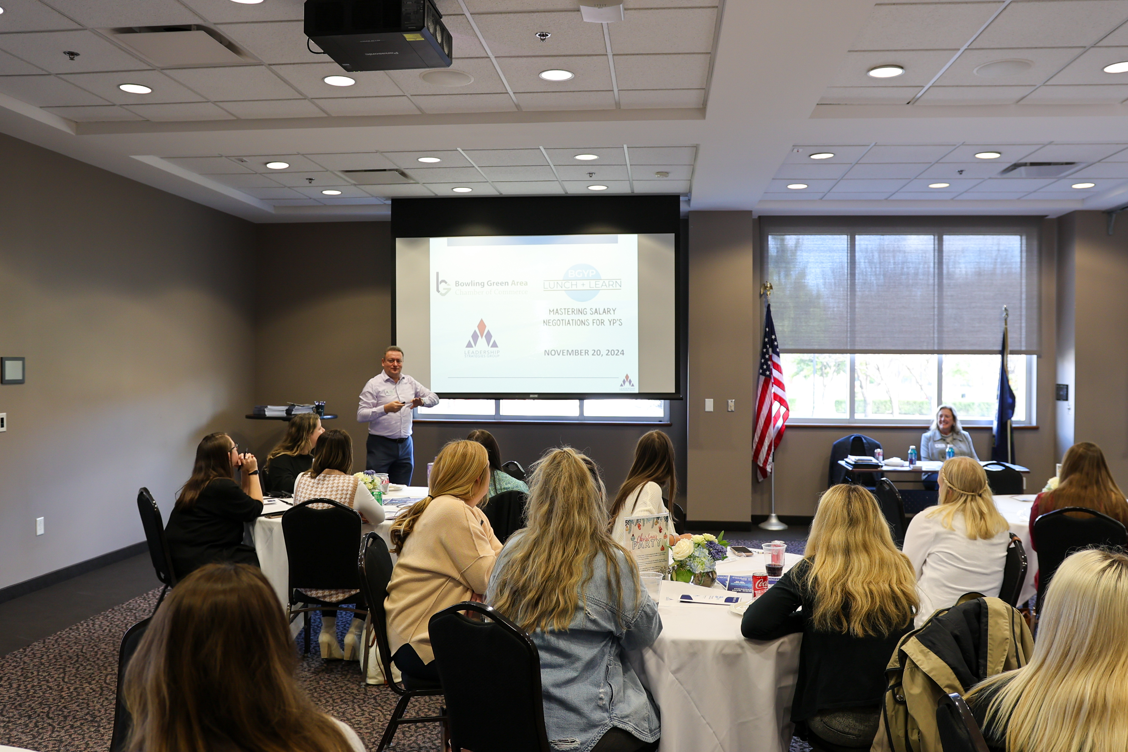 Bowling Green Young Professionals gathered on November 20th for an engaging Lunch + Learn session on Mastering Salary Negotiation. With a packed room and plenty of delicious food, the event delivered practical strategies, inspiring insights, and even a few laughs!